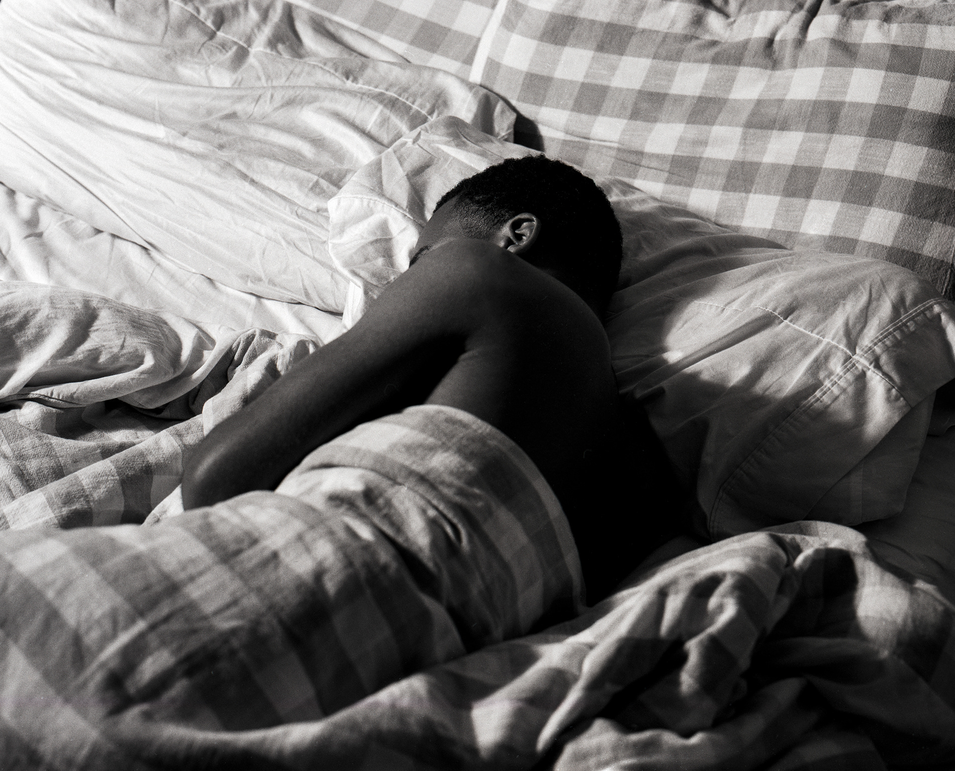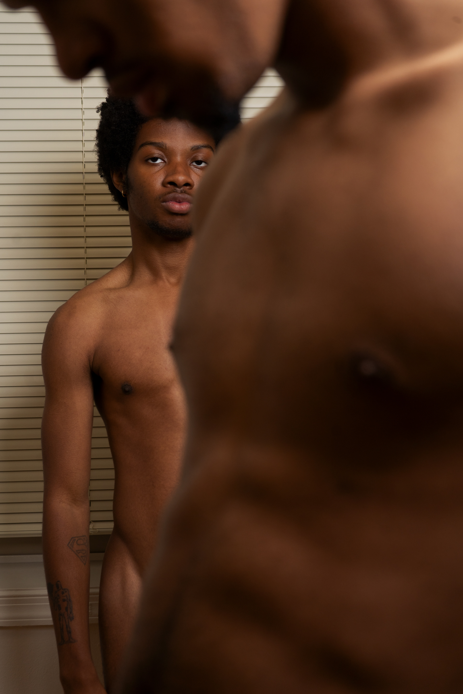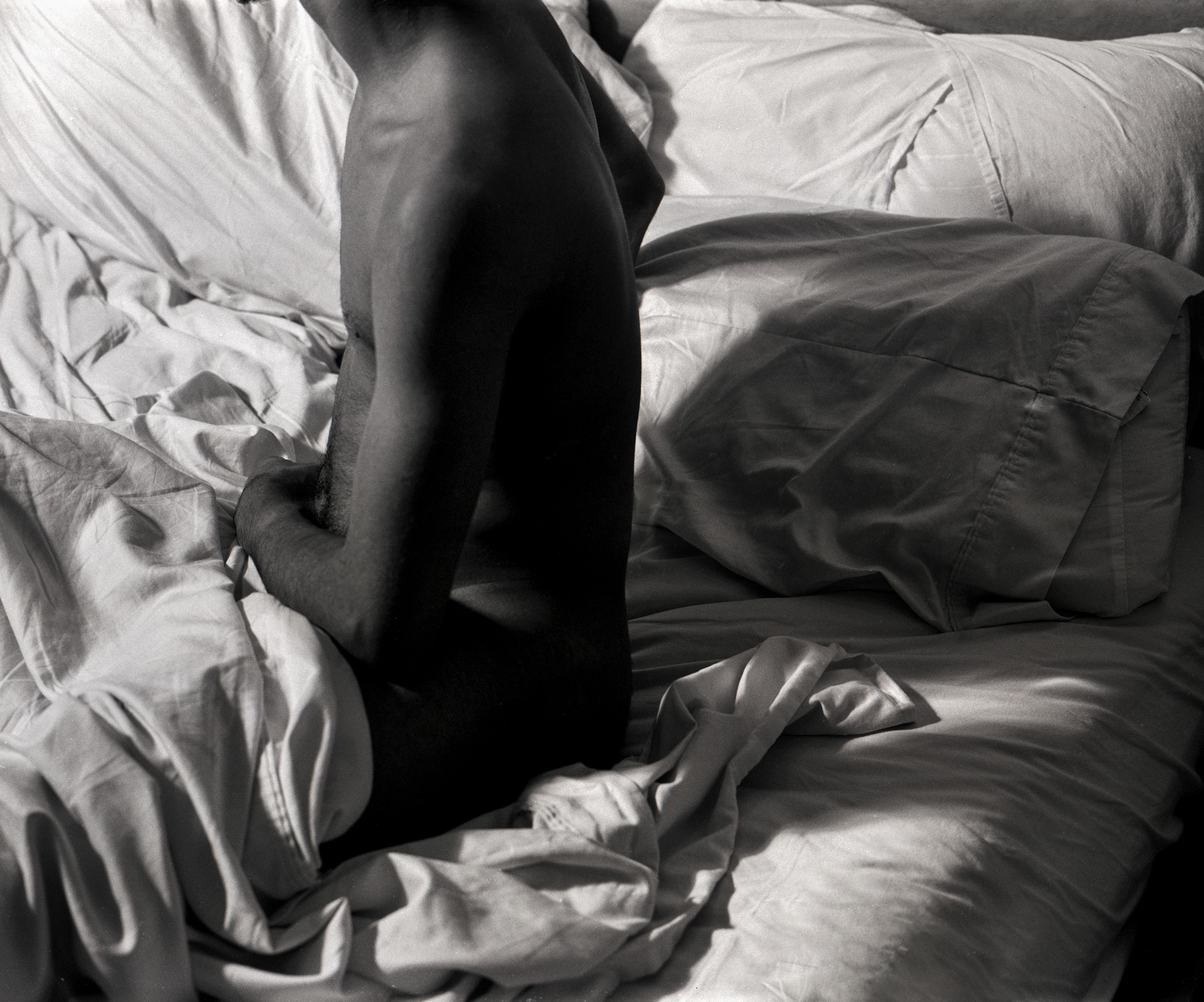Reflecting on the absence of emotional intimacy in my romantic life, this work has documented and visualized my thoughts surrounding intimacy, presence, and shame. Influenced by the documentary style of photography of the 1980s used by queer artists of the time, figures are composed to create paradoxical moments of intimacy and disconnect.